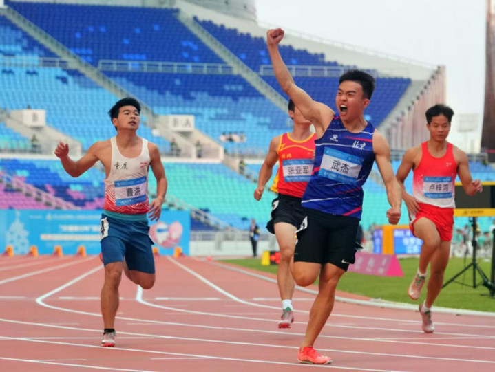 一旦冲出起跑线,武杰就进入了纵情奔跑的状态,在赛道上尽情展示着自己冲破空气阻力的恣意潇洒。